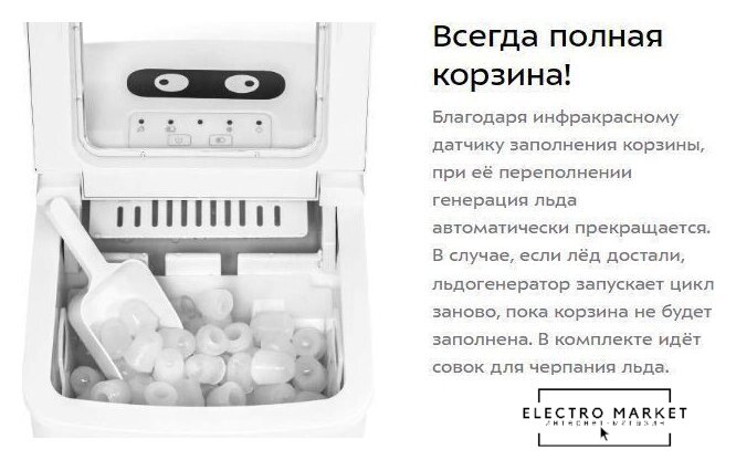 льдогенератор, 110 Вт, 1 емкость, 1500 мл, таймер